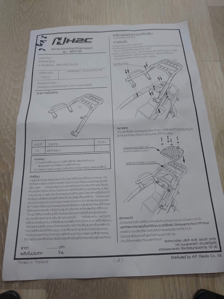 Baga sau H2C dành cho Honda ADV150 của Thái Lan hoặc Indonesia , được gia công bằng kim loại vật liệu tốt,trọng lượng nhẹ, có thể gắn được thùng GIVI.