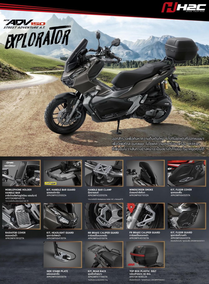 Bộ kit bảo vệ đèn pha trước H2C dành cho Honda ADV 150, với đầy đủ phụ kiện ,ốc ,pát,... đi kèm, lắp đặt dễ dàng cho xe mà không cần phải chế.