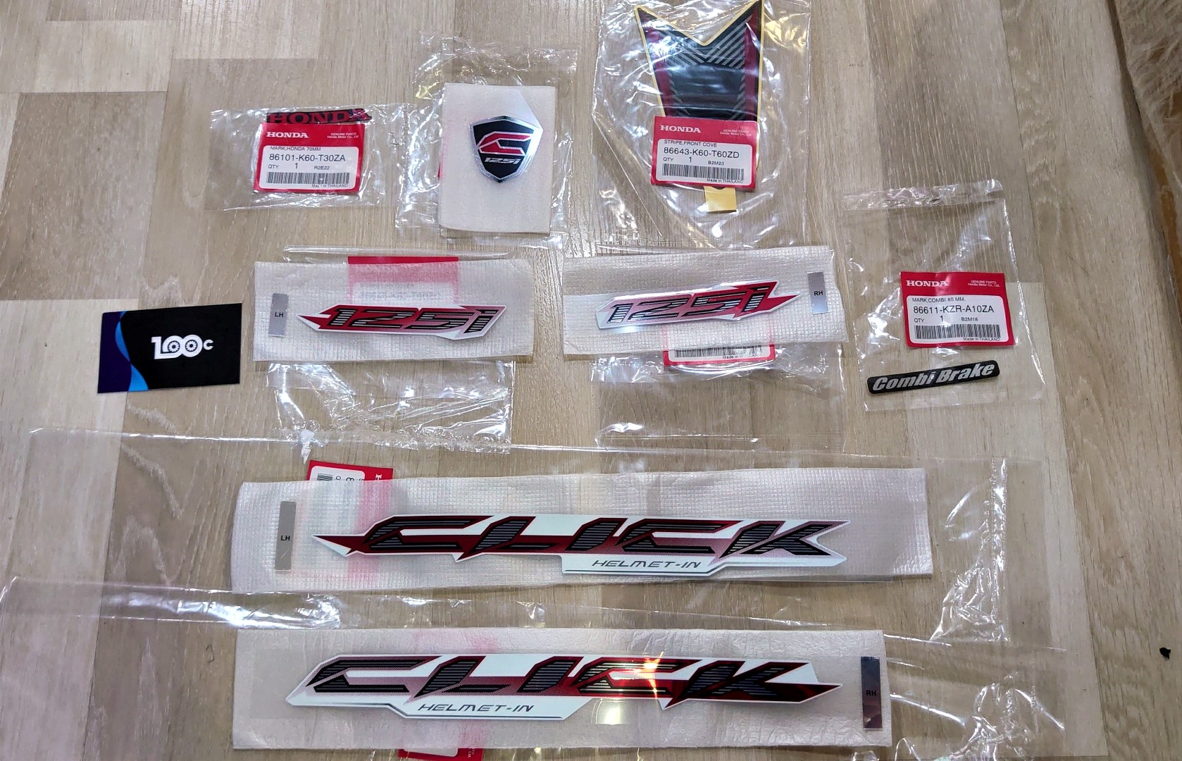 Bộ tem xe Honda CLick 125i Thái đời 2017 , dàn áo màu trắng , nhựa nhám màu đỏ.
