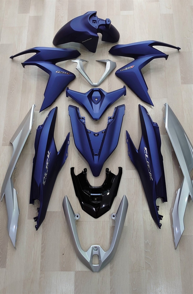 Bộ dàn áo gồm 11 món nhựa màu Honda Click 150i màu xanh dương nhám , đời 2021.