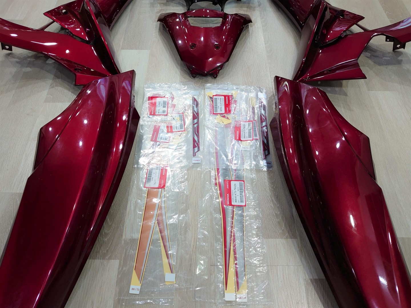 Bộ dàn áo Honda Wave 125i mẫu Led 2019 - 2020 màu đỏ tem giấy, có 2 tùy chọn đời 2019 tem xám và 2020 tem vàng.