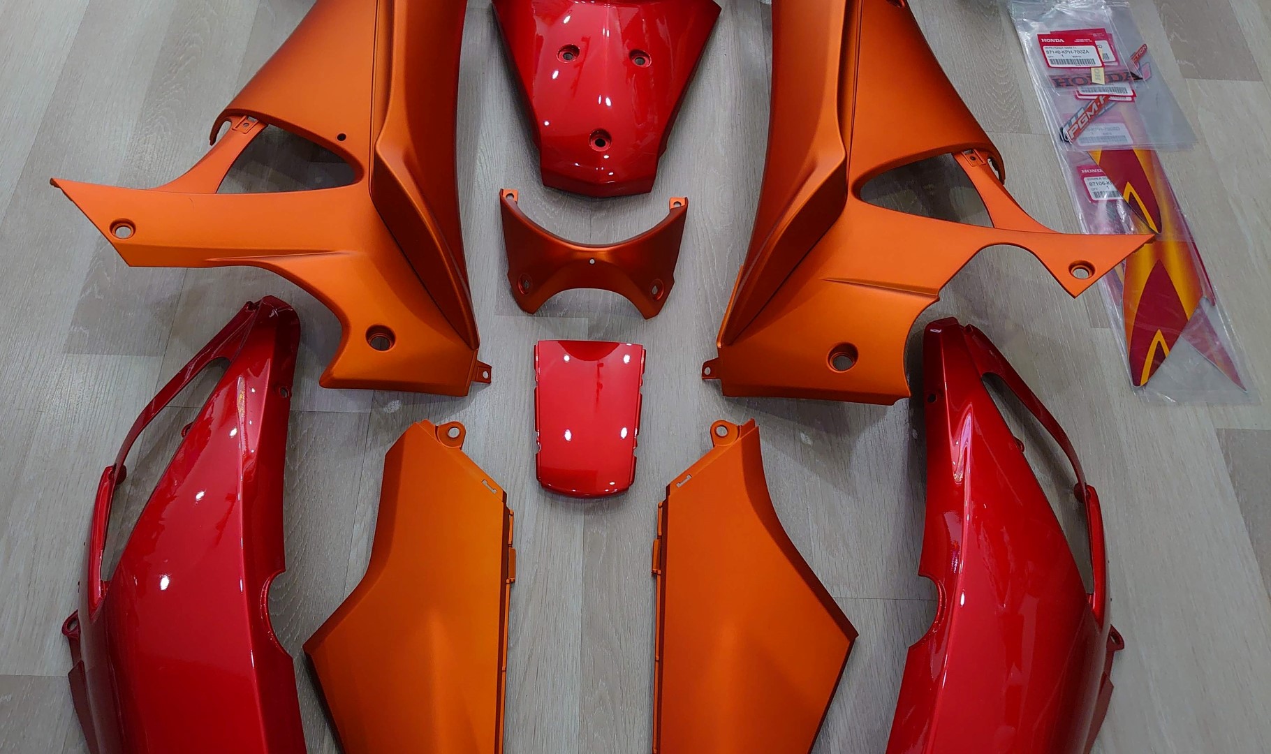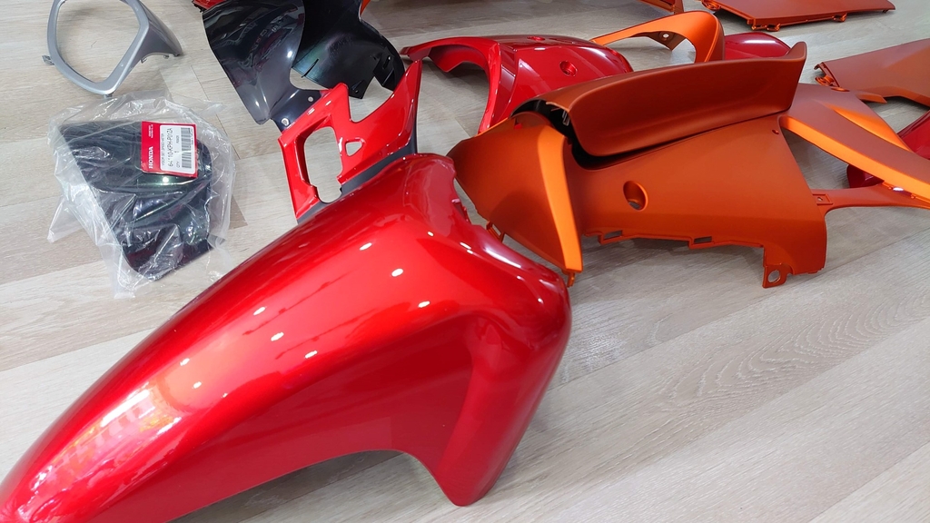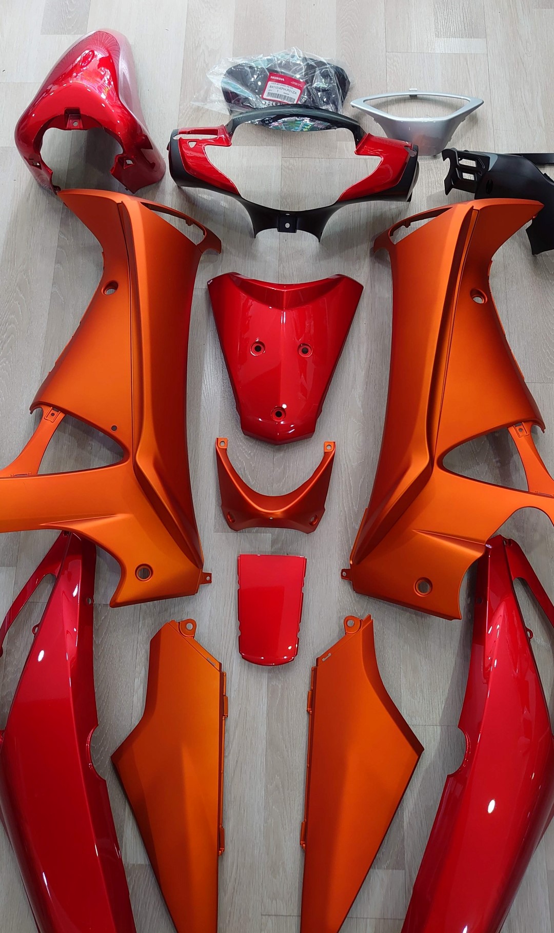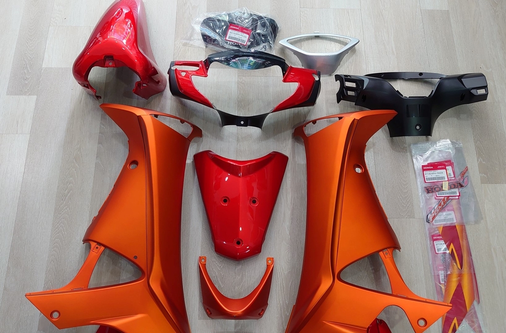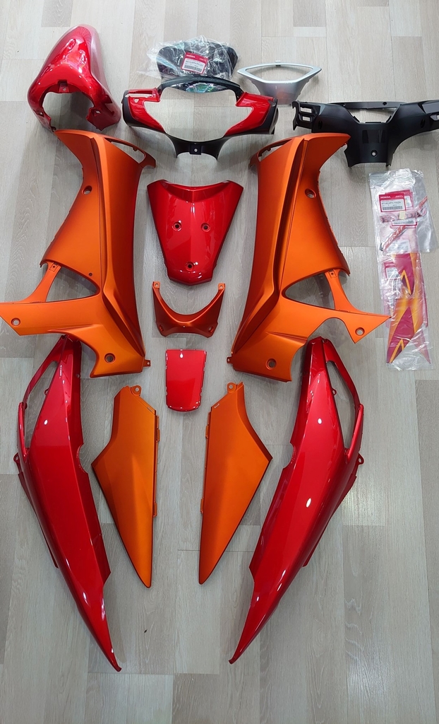 Bộ dàn áo gồm 14 món nhựa bóng và tem, kèm theo bợ cổ nhám , đời Honda Wave 125i 2008 - 2009 tùy chọn tem,có thể sử dụng chung với Honda Future Neo các đời.