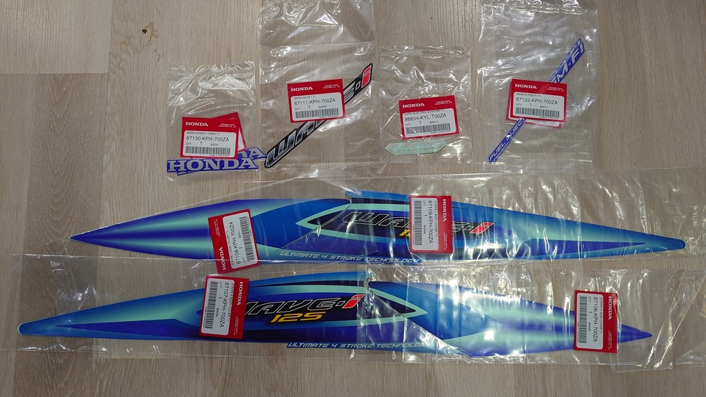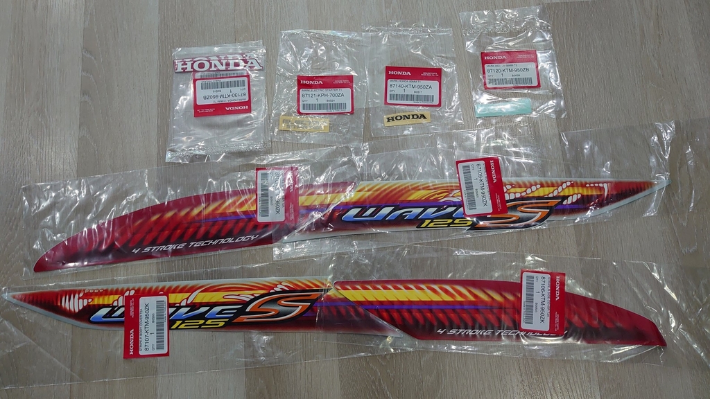 Bộ tem xe Honda Wave S125 (đời bình xăng con) / 125i ( đời phun xăng điện tử) đời 2005 đến 2010 , sử dụng cùng đời với Honda Future Neo / Neo Fi / Neo GT Việt Nam.