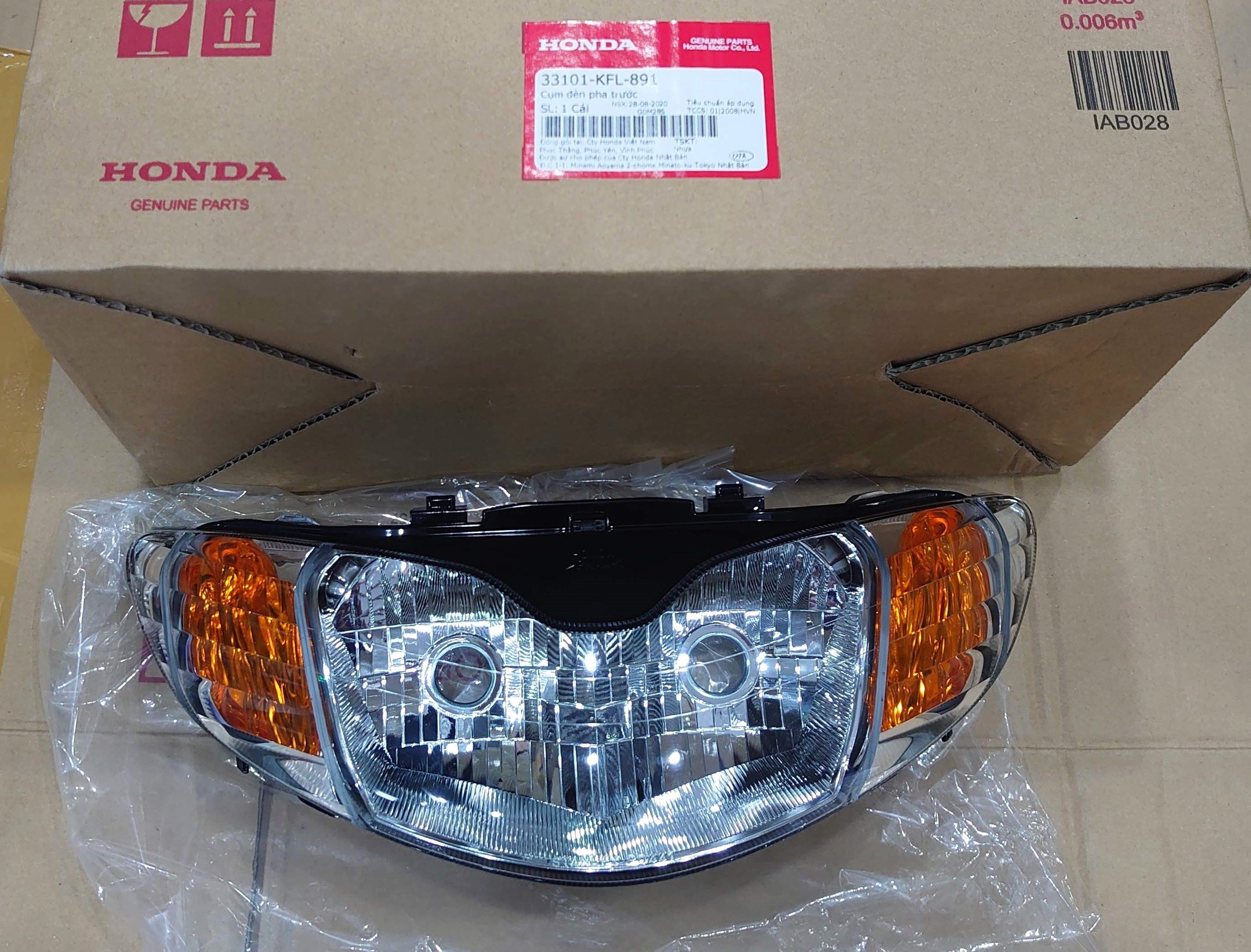 Cụm đèn pha trước 2 bóng do Honda Việt Nam Honda sản xuất, mặt kính Stanley.