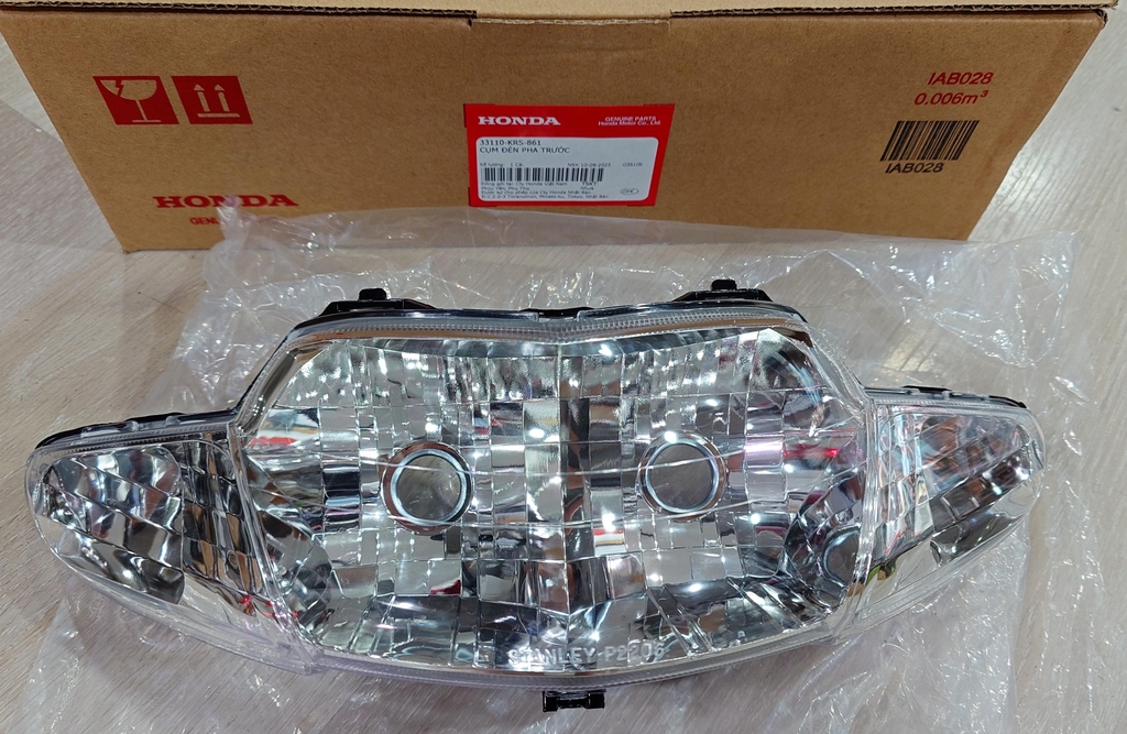 Cụm đèn pha trước 2 bóng do Honda Việt Nam Honda sản xuất, mặt kính Stanley.