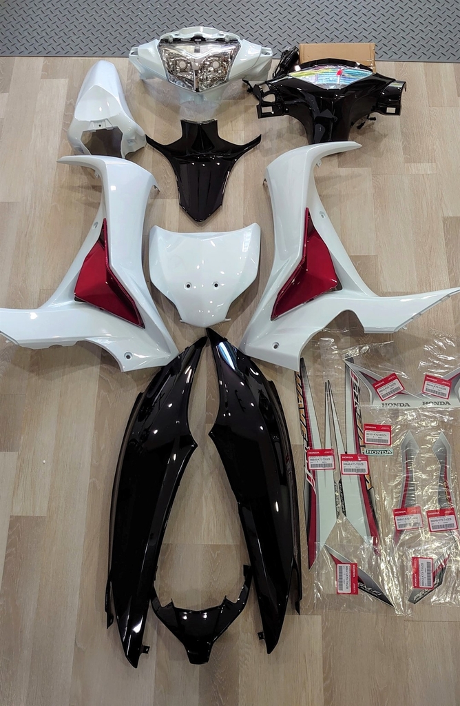 Bộ dàn áo dành cho Honda Wave 125i mẫu 2016 màu trắng - đỏ - đen ,phần nhựa sau màu đen, có thể dùng chung với Honda Future 125i ( Fu mập) Việt Nam.
