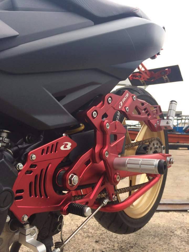 Gắp Racing boy đồng màu đỏ cùng các món đồ chơi khác , có thể nói gắp đến từ thương hiệu này cứng cáp hơn zin & mang tính thẩm mỹ cao . Bờ mông vối lốp Michelin được khoe trọn vẹn , pas biển số CNC , xinhan nút áo trở nên thon gọn hơn với nguyên thủy.