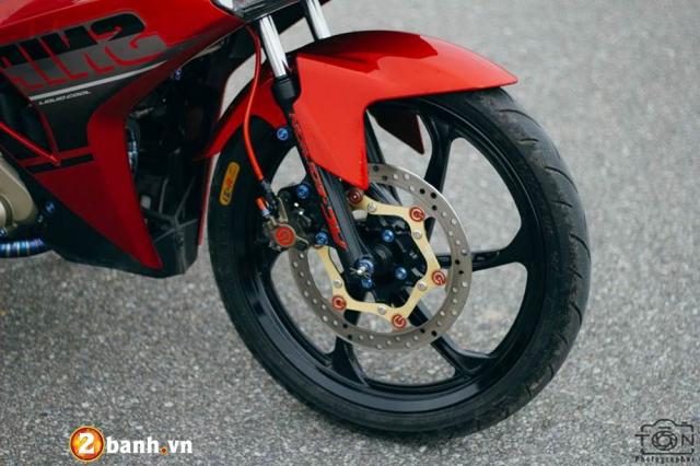 Dàn chân trước tạo cảm giác đơn giản cho người xem nhưng có mấy ai biết được nó đã tiêu tốn của chủ xe hơn 15 triệu đồng, bao gồm heo dầu Brembo billet KTM 1pis đây là một sản phẩm cực kì đẹp và luôn trong tình trạng cháy hàng bởi đã bị ngưng sản xuất khiến già thành của nó hiện nay còn đội cao hơn nữa. Sử dụng đĩa Brembo Oversize cùng thớt lòng CNC nhuộm đen để bắt vào mâm Yaz được tiện lợi hơn.