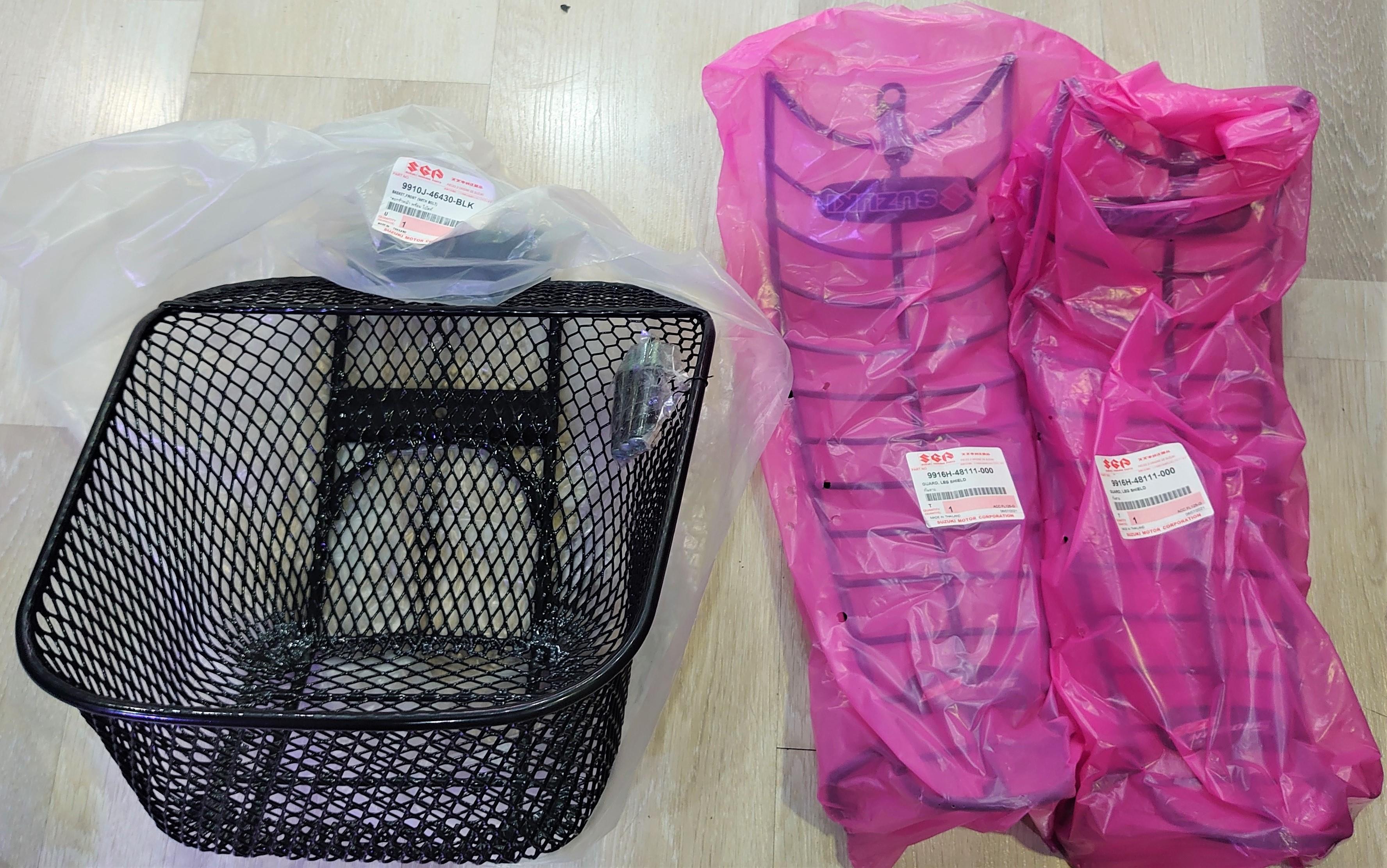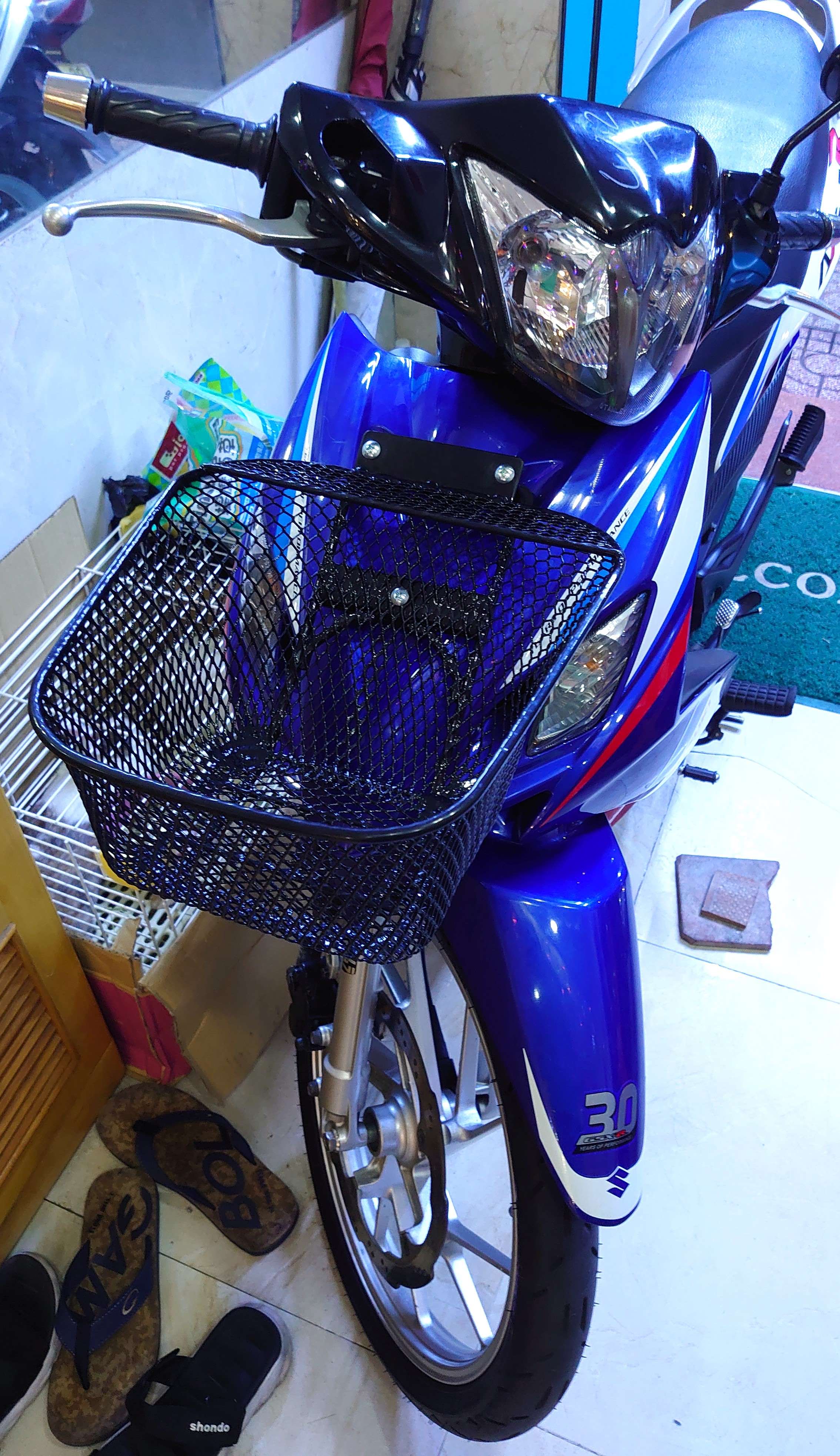 Sử dụng cho các dòng Suzuki Axelo , Shogun ,Viva , Xbike 125 ,...Rổ trước kèm theo 3 con ốc và 3 khâu nhựa để canh cho rổ không bị cấn vào mặt nạ trước.
