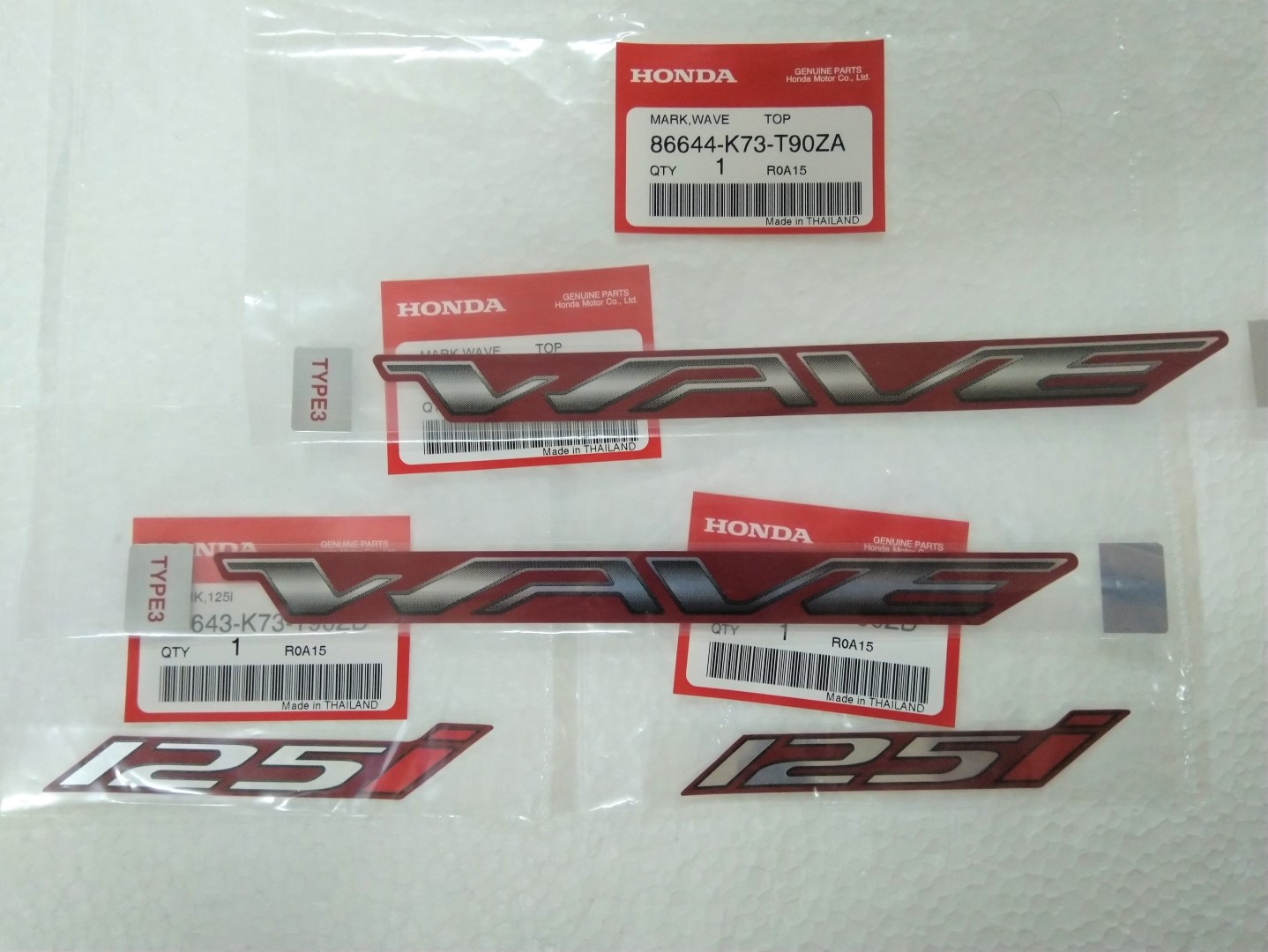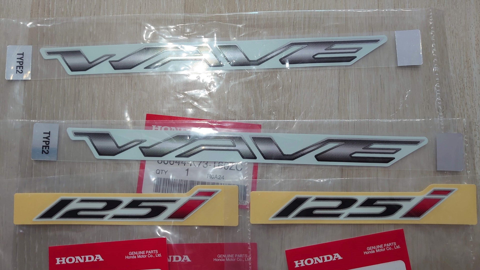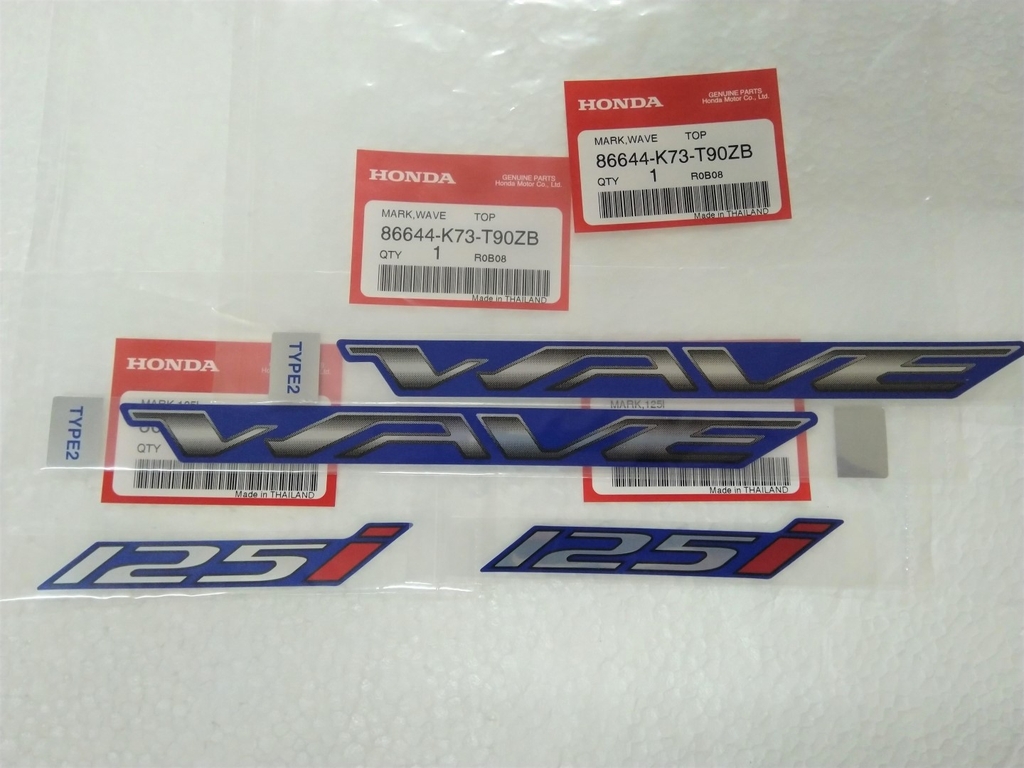 Tem giấy Honda Wave 125i phiên bản Led 2019 , gồm 2 chữ Wave và 2 số 125i cùng màu.